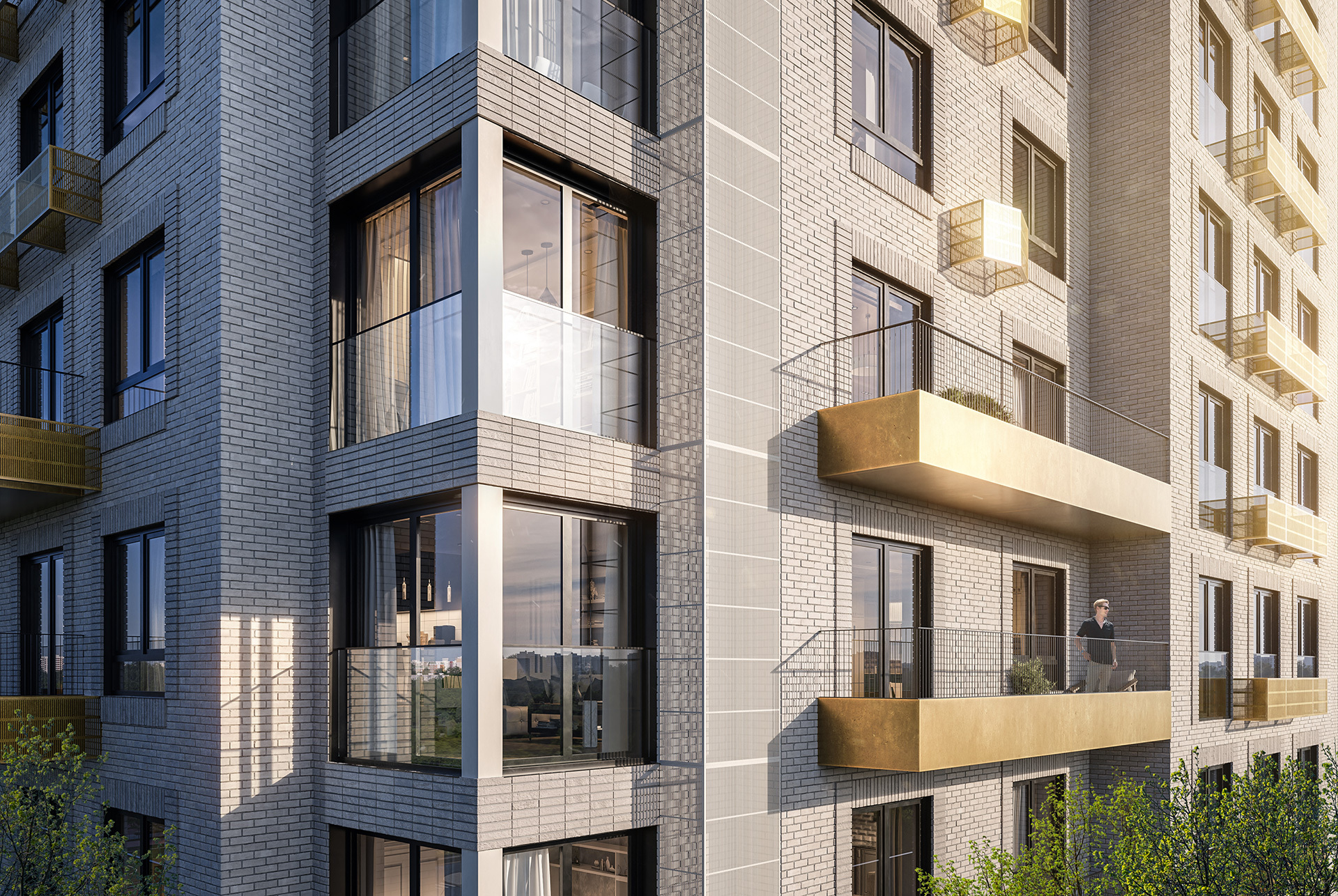 Представлены квартиры с панорамным остеклением, фигурными и угловыми балконами, увеличенными окнами, которые пропускают много солнечного света. Есть варианты с просторными террасами площадью от 29 до 55 м², где можно отдыхать или обедать всей семьёй.