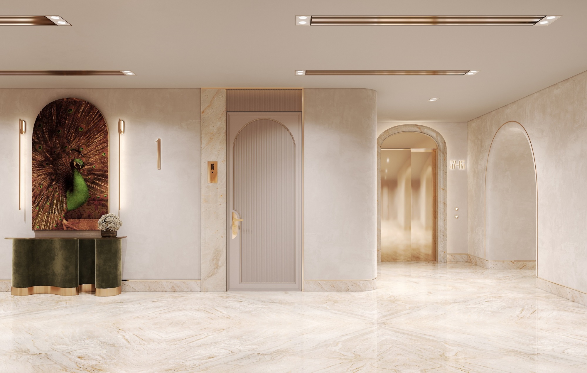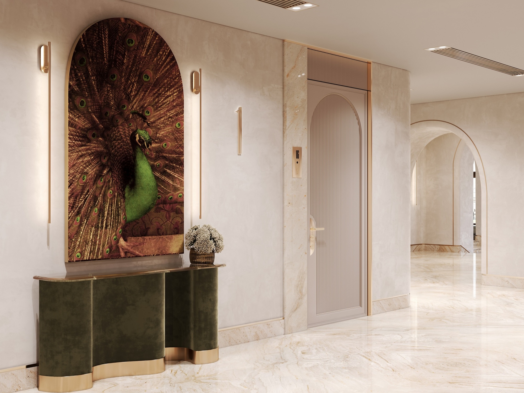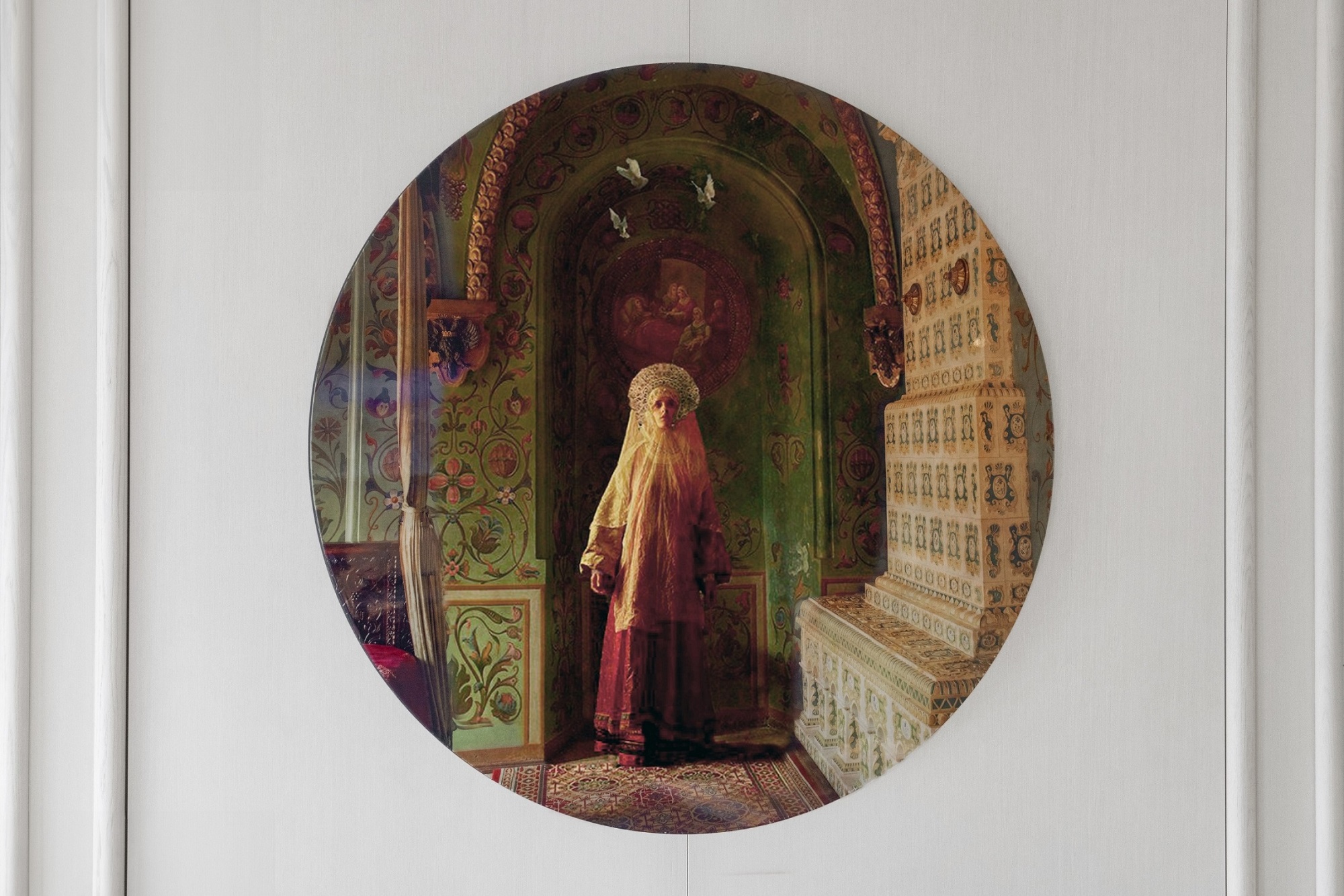 Эксклюзивные фотопанно располагаются в роскошных лобби и холлах «Ильинки 3/8» с отделкой из мрамора и латуни. Работы высотой до 2,2 метра выступают в роли порталов, ведущих в расписные сводчатые кремлёвские палаты. Жители видят русскую красавицу в царских одеждах, блики таинственного золотого купола. Грациозный павлин отсылает к жар-птице, белый голубь в стенах дворца символизирует Святой Дух. Фотохудожник тонко переплетает сказку и реальность, создавая собирательный образ славянской красоты, как это делали знаменитые живописцы XIX века Виктор Васнецов и Михаил Нестеров.