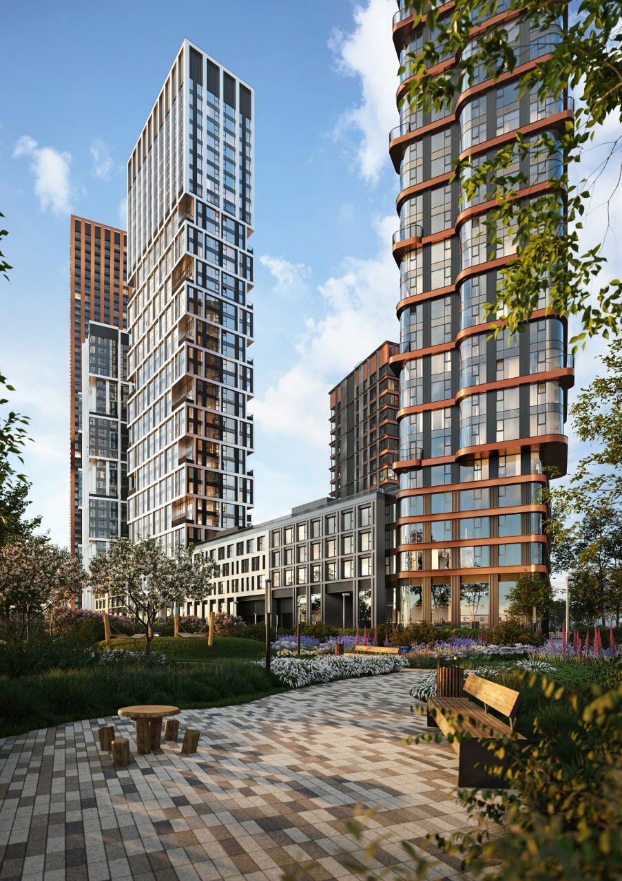 Пространства дворов с продуманной до мелочей инфраструктурой поддерживают прогрессивный взгляд на создание зон, где жителям хочется проводить больше свободного времени в дизайнерских лобби с лаунджами и кофе-поинтами.
