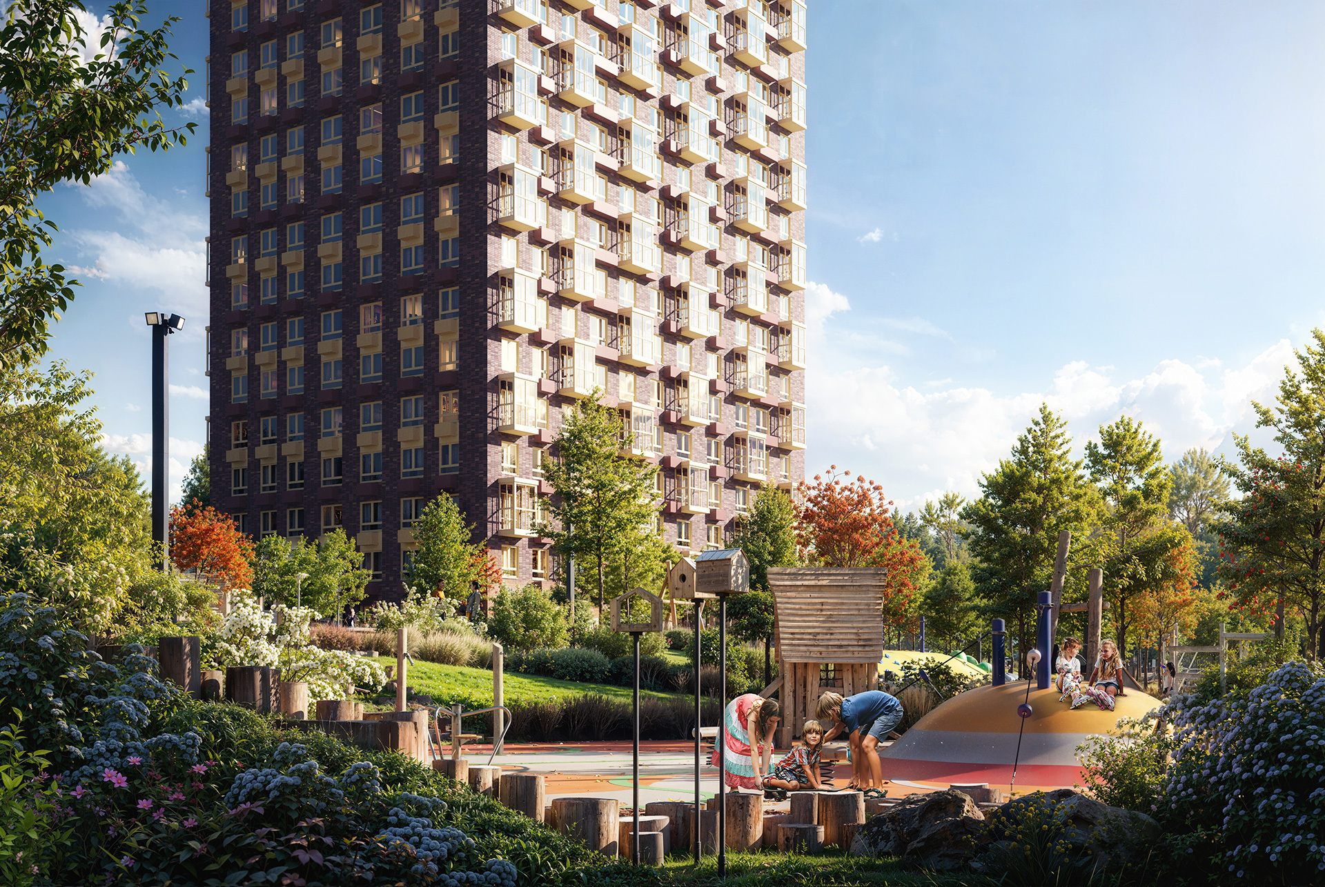 - Корпуса разной этажности — во дворе и квартирах будет больше света