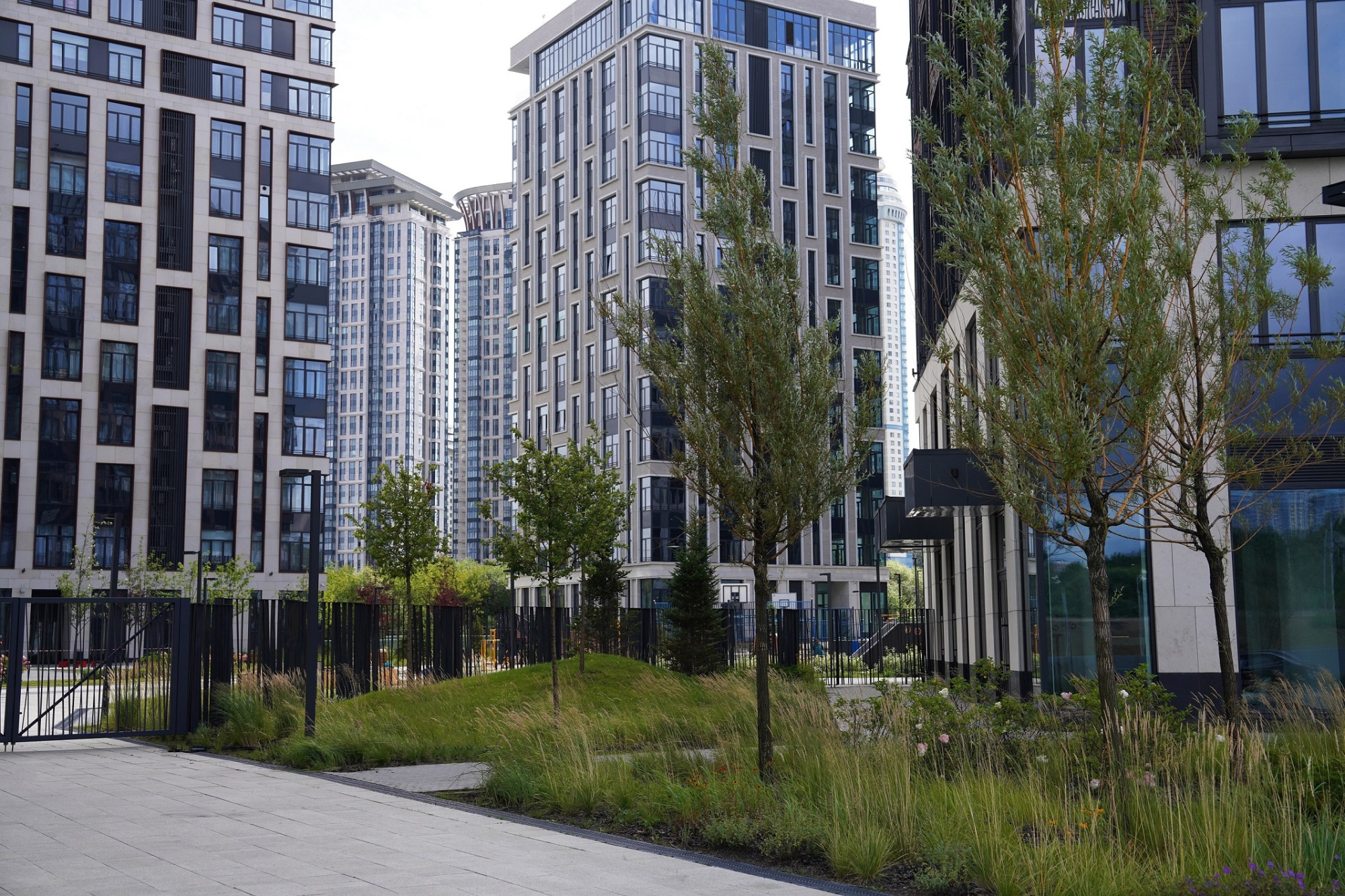 Среднеэтажные дома West Garden построены на комфортном расстоянии друг от друга в собственном парке площадью 16 гектаров. На территории есть зоны тихого и активного отдыха, девять детских площадок, пространство для подростков с амфитеатром и спортивная инфраструктура: универсальная площадка для командных игр и воркаут. Восемь гектаров занимает внешний общедоступный ландшафтный парк с благоустроенной набережной реки Раменки и экотропой. Ещё восемь — приватный двор-парк для жителей.