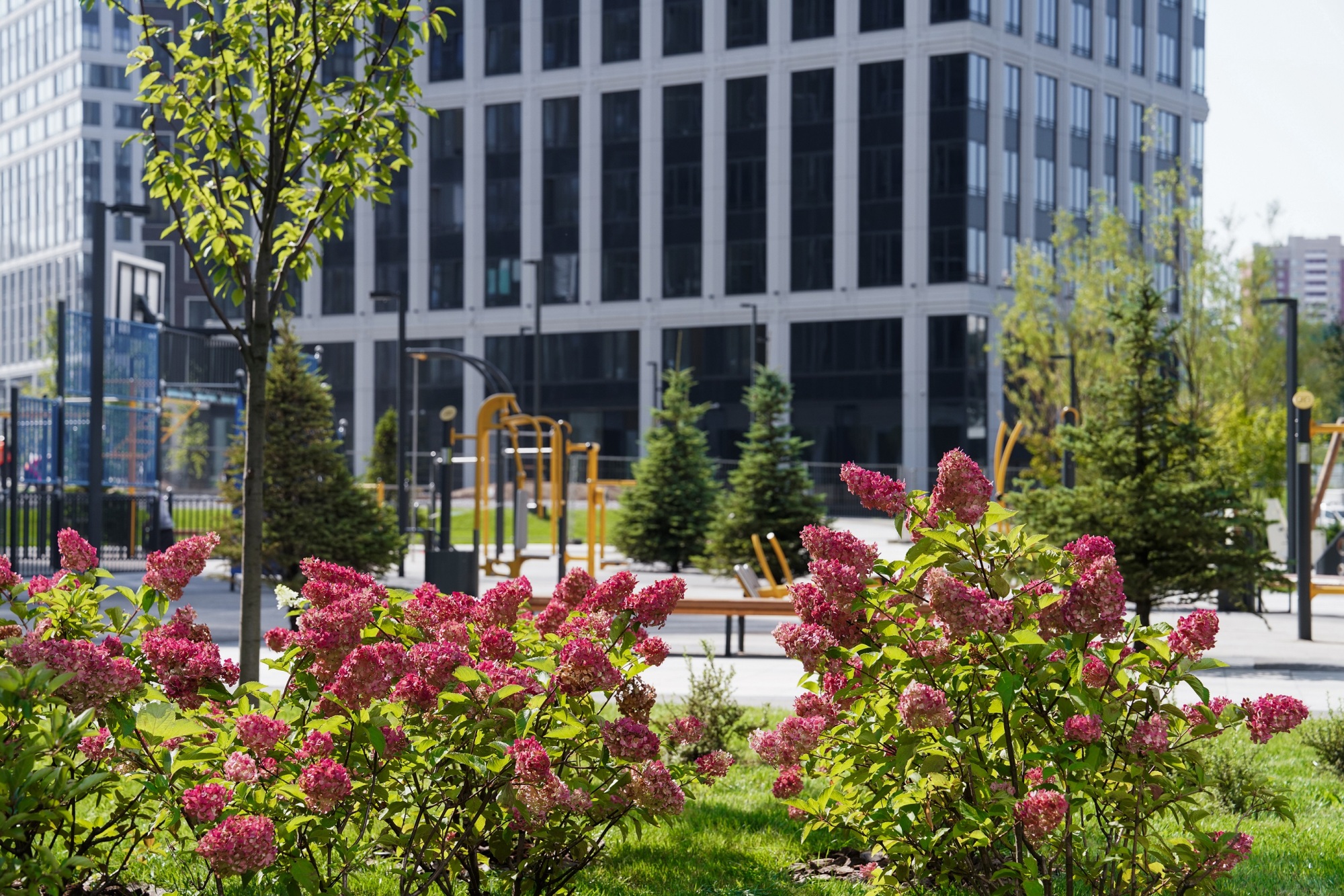Девелопер создаёт здесь разноцветные сады, где превалируют белые и фиолетово-розовые оттенки. Это луговые и пряные травы, такие как шалфей, мята, монарда, иссоп, декоративная яблоня Недзвецкого. Множество видов кустарников, деревьев и многолетников с высокой степенью декоративности: спирея гибридная «голдфлейм», сирень, сибирский ирис, несколько сортов черёмухи, в том числе декоративная черёмуха Маака с корой золотисто-вишнёвого оттенка. Также на территории двора высаживаются ломкая ива «булата» с круглой кроной, гортензии и пихты, астры, высокая полынь Людовика, декоративный лук, крокусы и многие другие сорта растений.