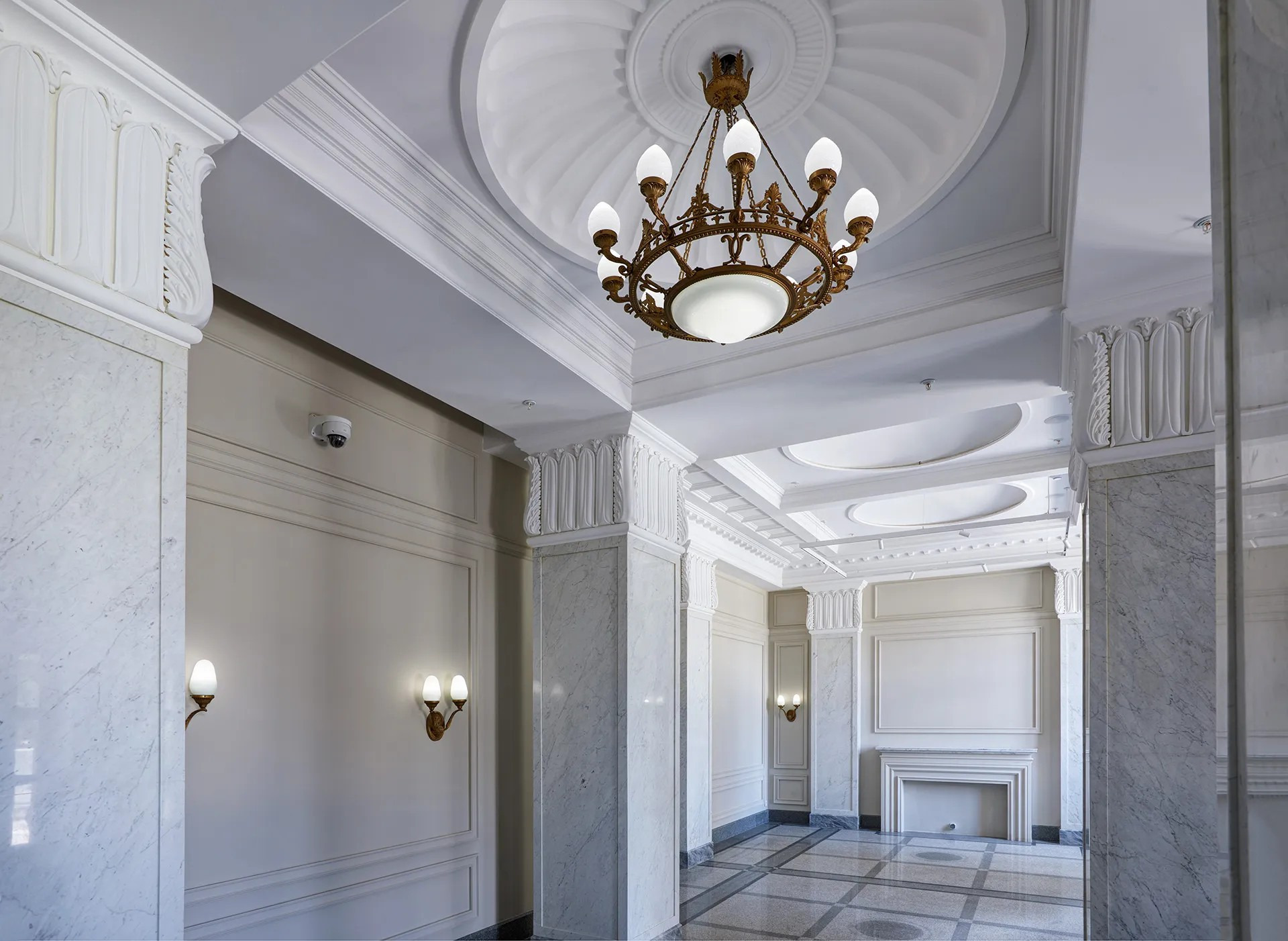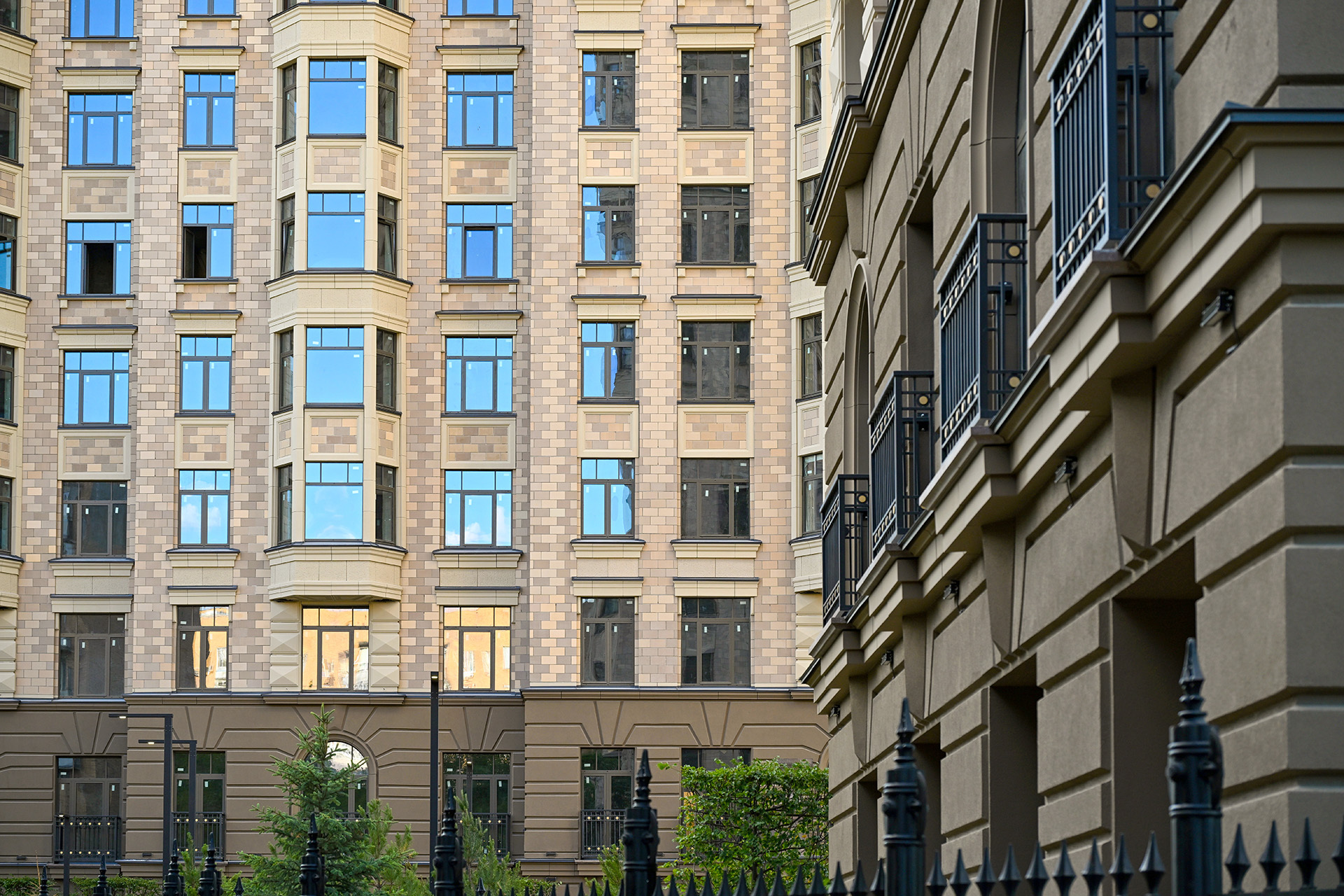 Москвы и истинных семейных ценностей. Дизайн парадных разработан по историческим эскизам ХХ века. Дома украшены эркерами, колоннами, карнизами и барельефами. На фасадах – русты из декоративного камня на нижних ярусах, на парапетах крыш – обелиски.